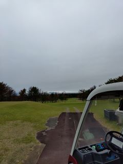 予報では一日中曇り。数ホール進むと傘を差すほどでもない雨。予報では雨雲が南から北上して抜ける感じ。「晴れの国」・岡山出身の彼女は晴れ女を自称しているが「雨を背負って来たね」には「最近そうなのよね~~」。