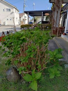 仮に咲いたら…… 玄関先には牛乳の宅配ボックスがある。朝取りに行くのも日中ランダムに牛乳瓶を返すのも女房。ふと目を移したら季節外れに咲いた紫陽花。突然の開花に仰天する前に、花芽が膨らんできたと大騒ぎしているでしょうが…… いつも思うのですが、アジサイの剪定の適期はいつなんでしょうか。葉の繁りはそのセイなのかも。