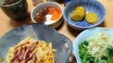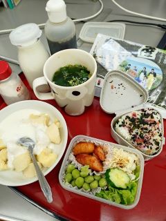 ボッチ飯の場合におにぎりの頻度が高いのは、いつもの雑炊よりおにぎりが腹持ちがいいし、既製品の雑炊だといかにも手抜き風に見える、との負い目があるのかもしれません。タッパーに入った生野菜や総菜にはいつも感謝です。