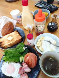 その日は、足りない分として少し厚切りだけど2枚入りの食パン。で、食パンについては某ゴルフ場の洋(=朝)定食風にしたいと女房に頼んだ。それは目玉焼き。半熟をパンに乗っけてこぼさずに如何に綺麗に食べ終えることができるのか、チャレンジしたかった。