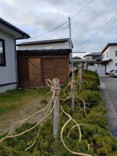「本職が見れば素人がやったのは丸分かりだと思います」。最近、雪吊りの本場の金沢の職人さんの動画を見て知った。4本で吊るのは縁起が悪いからやらないとか。4本吊りが多い私はでNG!? 秋田のしきたりはどうなの!?