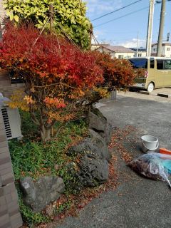 改めて向かった26日。暗い中、荒縄の切れ端は拾い上げたつもりでも、落ち葉とともに散らかっていました。現場を汚したまま姿を消したのは仕事師として恥ずかしい。お住まいの方々には見苦しい思いをさせ、申し訳なかったです。