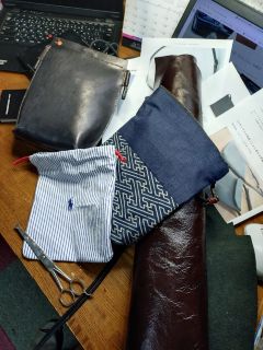 問題は底の両角の処理。2枚の革の表面を内側にして縫い合わせて最終的にひっくり返す。その両角をどう前処理すべきか…… 一番左がラウンドで持ち歩く自作の愛用のサコッシュ。右の布製は女房の手作りで革の前に愛用した。そいつの底の処理がまさに求めているものでした。「型紙なんてないよ」という女房に昨夜、縫製の仕方を教えて貰った。