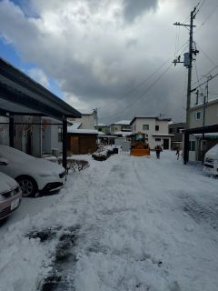 朝、起こしにきた女房がシャーッとカーテンを開ける。「降ったか?」「降ったよ! 隣の旦那さんが除雪している」。夜中に風が吹き荒れるでもなく静かな夜が危ない。なんぼか雪が積もったようだ。いつもの冬だな、と。