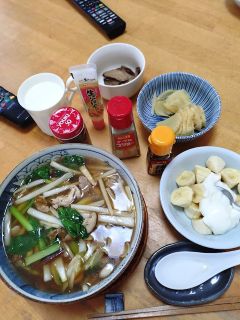ラーメン好きでもあるし、女房の手作りラーメンは旨いし、レベルが高い。チンゲンサイ、白いのは多分ハクサイの芯の部分、豚コマには片栗粉をまぶし、スープが冷めないようにと片栗粉でとろみを出している……