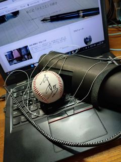サインボールがありましたので並べました。高校野球だと金属バットでひっぱたくんだから革を極限まで引っ張りつつ縫い上げるのだな、と想像がつきます。それ程でもないにしろ結構強い力で引っ張り上げます。その一針一針に時間のかかること。平縫いの比ではありません。