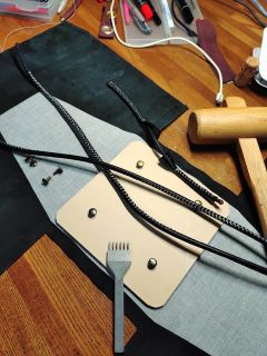 8日21:53の第2作目の巾着袋。前段の弁当がアチャコチャ動かないようにかなり厚い革をカシメで固定したところです。だとすれば限りなく信玄袋!? 隣には剣道の達人がいた。彼らの防具入れはまさしく信玄袋。「あだ作ったの!! すげねが」と言ったが、巾着じゃなく信玄袋と思ったのでしょうか。
